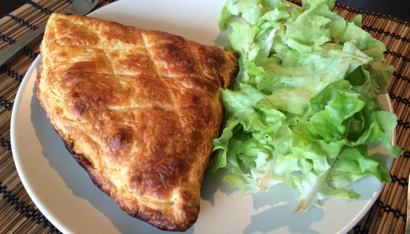 Préchauffer le four à 180°C (Th 6), puis découper la pâte feuilletée en 4.