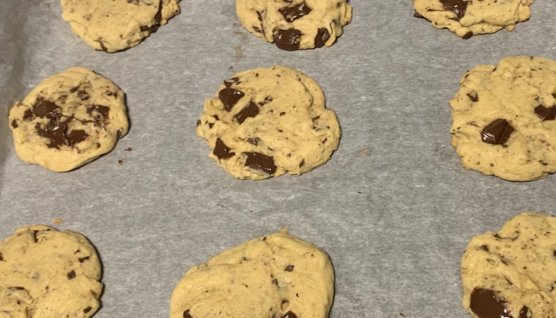 5. Déposez de bonnes cuillerées de pâte sur la plaque de cuisson et espacez-les bien.