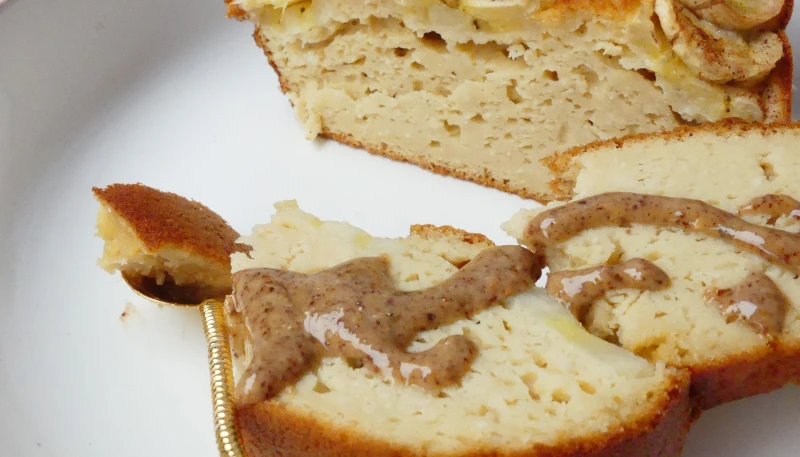 La recette : 1 - Mélanger les ingredients sauf la banane. Verser la pâte dans un moule à cake Disposer des tranches de banane au dessus Enfourner à 180 pendant 50mins