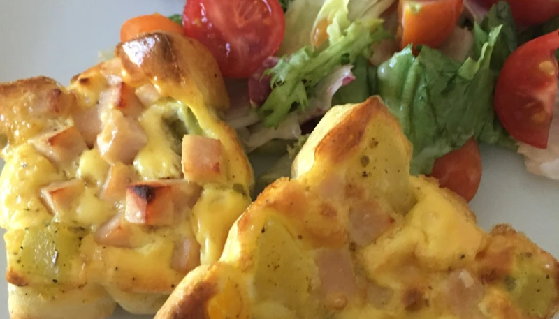 4/ ajouter les lardons ou dés de poulet. Les enfoncer légèrement dans la préparation.