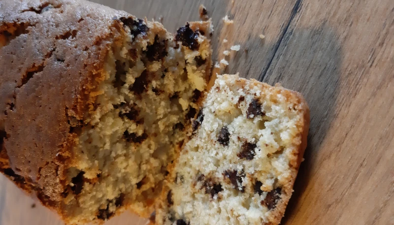 Mélanger les oeufs avec les sucres. Eplucher et écraser les bananes. Mélanger. Ajouter le beurre préalablement fondu. Incorporer la farine et la levure. Mélanger. Enfin ajouter les pépites