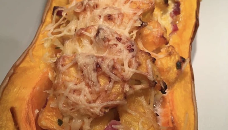 Ajouter la crème, les lardons et le persil à la poêle avec la chair de butternut. Mélanger puis remplir les butternuts de cette préparation. Recouvrir de gruyère râpé. Mettre les butternuts farcis dans des plats pour les maintenir... et mettre à cuire 35 à 45 min à 180 degrés. Dégustez !