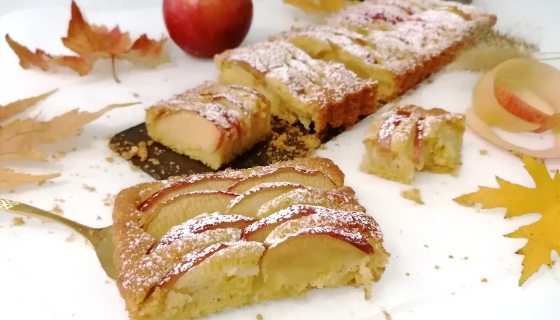 6° Disposez les lamelles de pommes sur toute surface de la pâte.