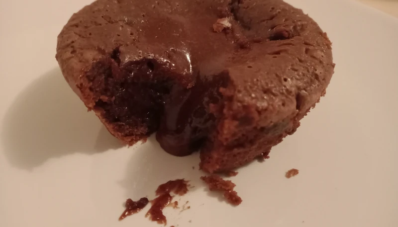 Versez la pâtes dans vos six moules et insérez les carrés de chocolat dans la pâte (ils doivent être recouverts).