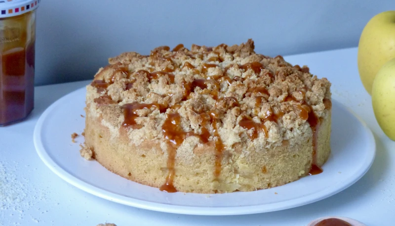 4. Incorporer les pommes coupées en morceaux, fouetter et verser dans votre moule.