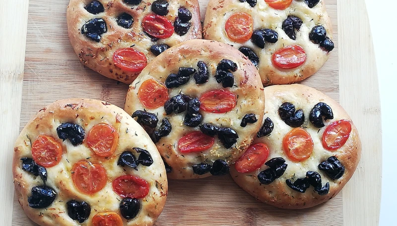 Dès la sortie du four, étalez à nouveau très peu d'huile assaisonnée sur les focaccia pour leur donner un peu de brillant.