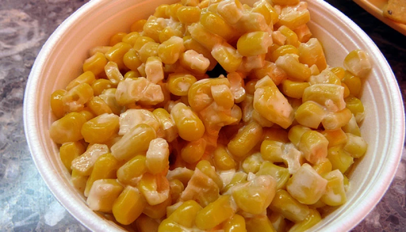 Versez une boite de Mais dans un bol et ajoutez du beurre.