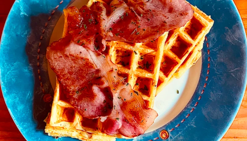 6. Ajouter le bacon grillé sur les gaufres et quelques herbes selon tes envies !