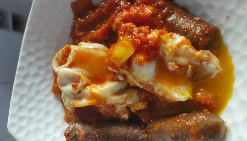 En fin de cuisson, à l'aide d'une cuillère en bois faire des creux dans la sauce et casser les oeufs. Laisser cuire à feu doux afin jusqu’à ce que les blancs coagulent.