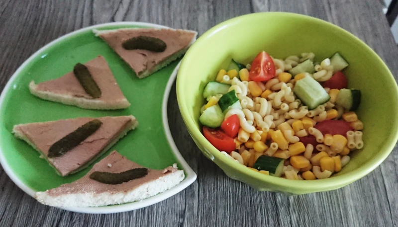 Coupez les toasts en 4, puis déposez un demi cornichon sur chacun d'eux. Déposez sur un plat ou une assiette de service et préparez la salade.