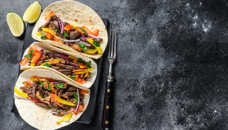 4° Garnir les tortillas de légumes et de viande. Déguster.