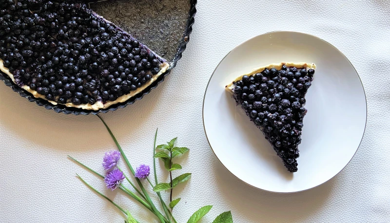 Renfournez ensuite jusqu'à ce que la pâte soit presque cuite : elle ne doit pas être totalement colorée. Sortez la tarte, garnissez-la de confiture et de myrtilles fraîches puis enfournez à nouveau pour 5-7 min.