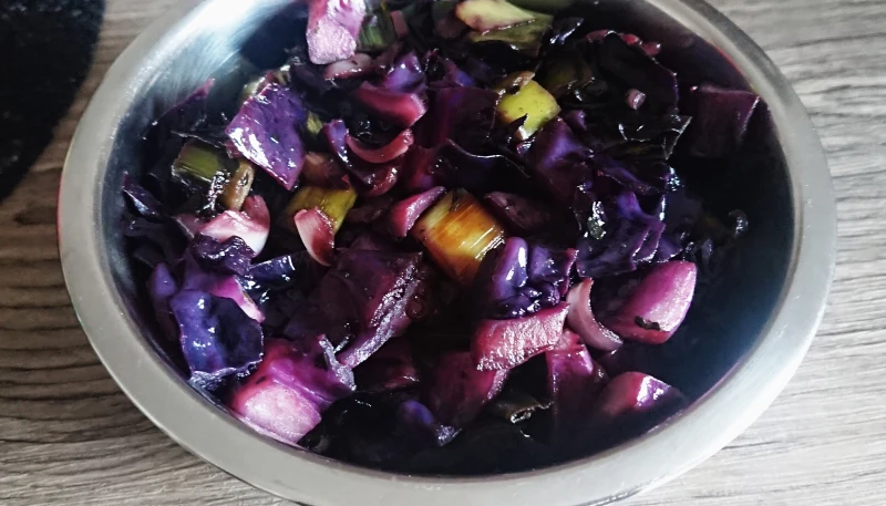 Faites chauffer un gros filet d'huile d'olive dans une sauteuse ou une poêle creuse et commencez par faire revenir le chou. Remuez et laissez cuire à couvert une dizaine de minutes.