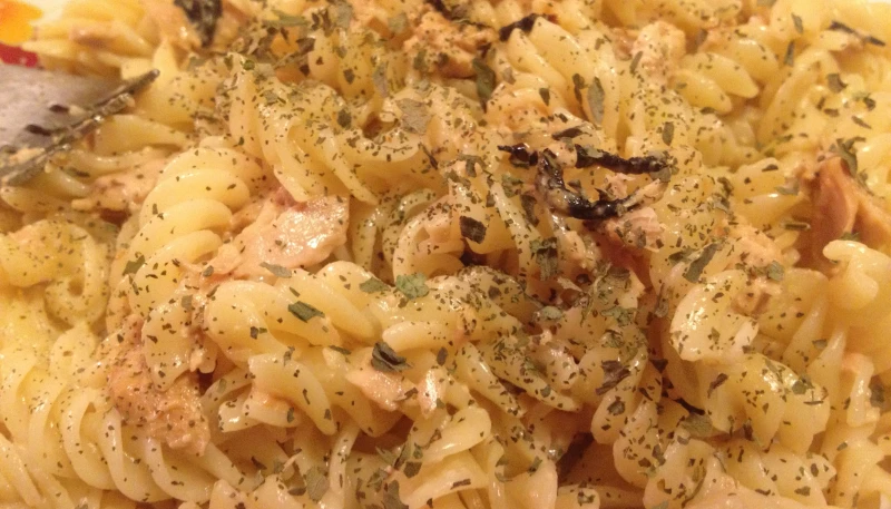 2) Ajouter ensuite la boite de thon (de préférence à l'huile c'est meilleur !) et la crème fraiche (quantité selon les envies de sauce).