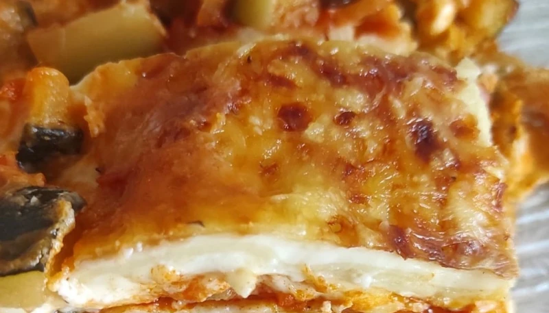 Mettre un filet d'huile d'olive dans le fond d'un plat, disposer des pâtes, ajouter la sauce à base de courgettes, ajouter les dés de crottins, recouvrir de béchamel. Ajouter une nouvelle couche de pâtes et répéter les étapes précédentes. Finir par une couche de pâtes et recouvrir de gruyère râpé