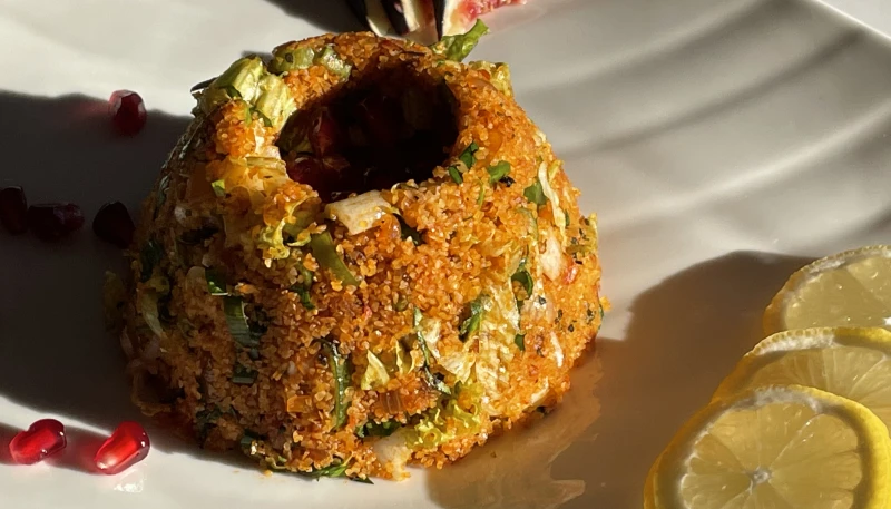 @le.carnet.de.cuisine Dans un grand bol , mettez le boulgour et versez l’eau chaude dessus , couvrez avec une assiette et laissez reposer 15 minutes , pendant ce temps, dans une poêle faites revenir les oignons coupés dans l’huile et les concentrés de tomates + poivrons.