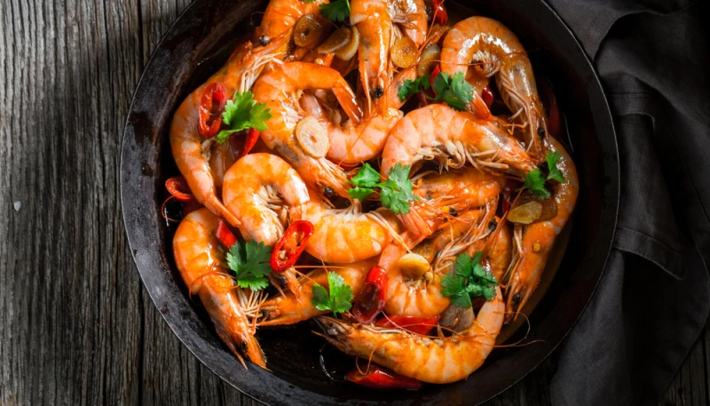 1° Faites fondre le beurre et le filet d'huile d'olive dans une poêle. Ajoutez et faites dorer les langoustines lavées.