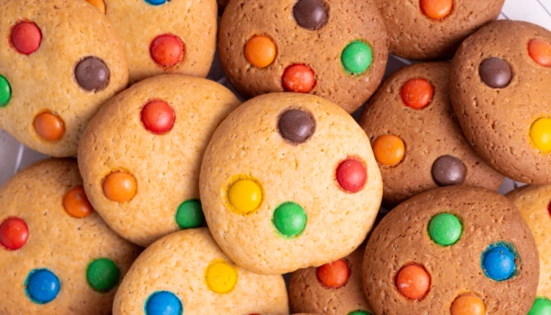 4° Déposez 4 smarties de couleurs différentes sur chaque biscuit en les espaçant, puis enfournez les cookies pour 15 minutes.