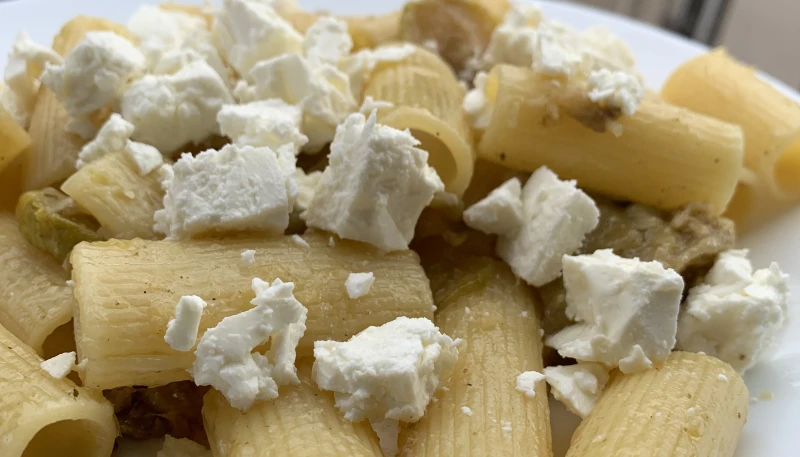 Mélanger le tout et couper les fetas en morceaux avant de servir bien chaud !