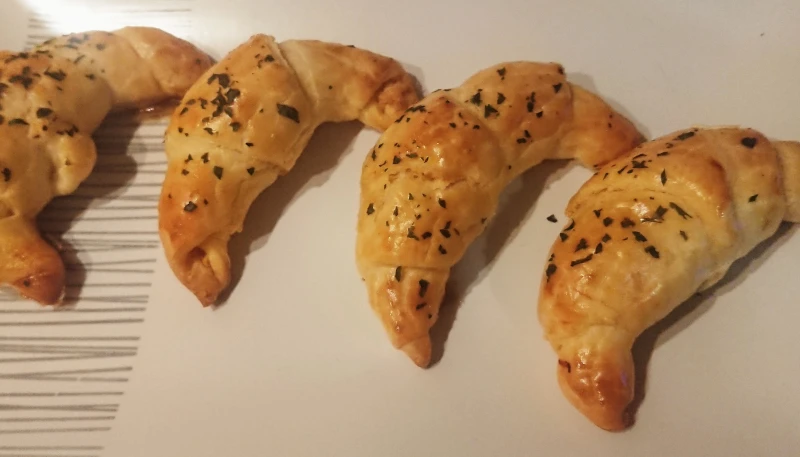 Badigeonnez chaque croissant de jaune d’œuf et saupoudrez d'un peu de persil.
