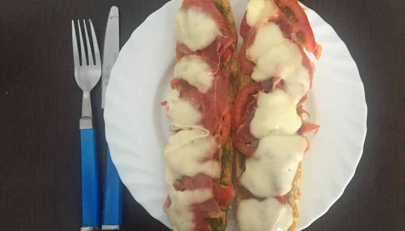 Préparez de larges tranches de pain et étalez du Pesto sur l'une des faces.
