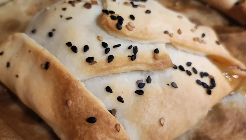 Émincer l'oignon et le poireau et les faire suer avec les lardons. Ajouter la crème. Saler poivrer. Répartir sur les quart de tarte et refermer en petit panier. Enfourner à 180°C pendant 15min. Déguster avec, en accompagnement, un mélange de céréales, des pâtes, du riz ... A vous de voir 🙃