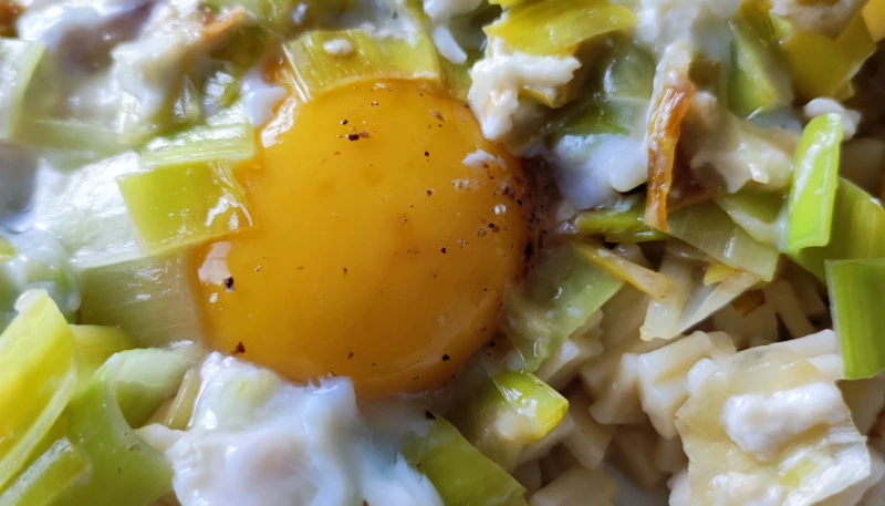 Cuire les crozets dans l'eau bouillante pendant 10min. Dans une poêle, faire revenir les Poireaux avec un filet d'huile d'olive. Ajouter les crozets cuits et le fromage couper en morceaux. Laisser fondre puis casser les oeufs dans les poireaux . Couvrir et laisser cuire à feu très doux.