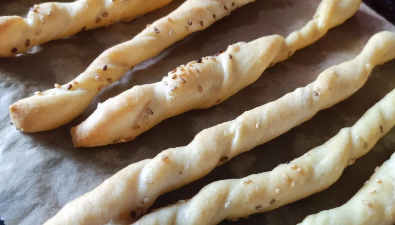 6° Faites cuire au four préchauffé à 200°C pendant 10 à 15 minutes, jusqu’à ce que les gressins soient cuits.