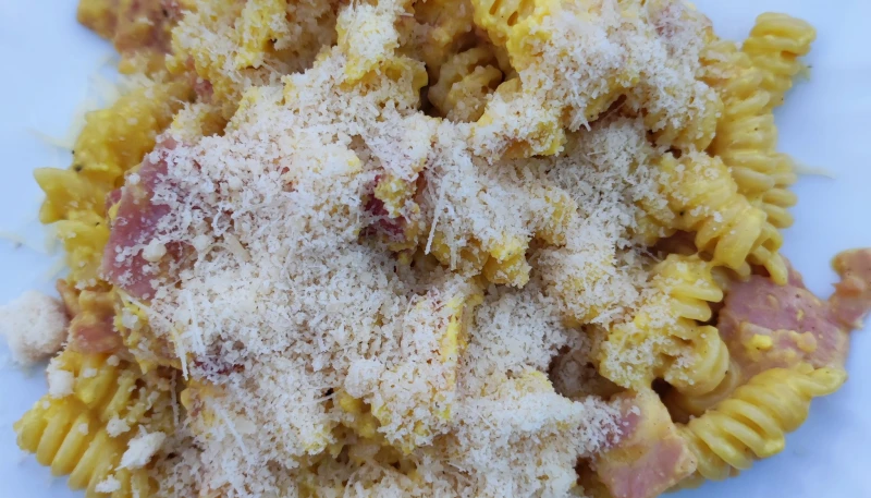 Les pâtes alla carbonara sont prêtes. Bonne dégustation !
