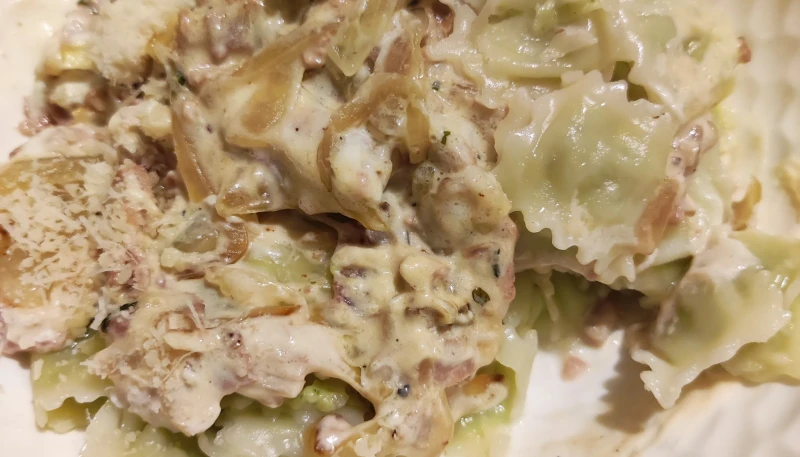 4° Dresser dans les assiettes en déposant les ravioles et ajouter la préparation. Vous pouvez saupoudrer de parmesan.