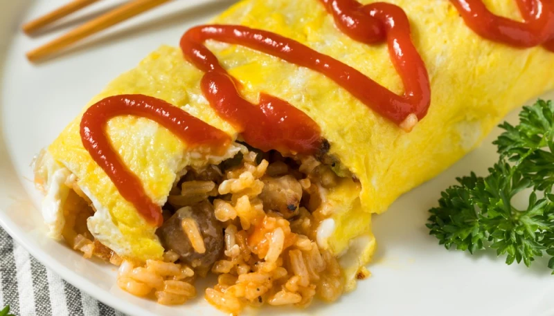 Et voilà, votre omurice est prête à être dégustée ! Vous pouvez également ajouter d'autres ingrédients, comme de la viande hachée ou des légumes, pour varier les saveurs de cette omelette garnie japonaise.