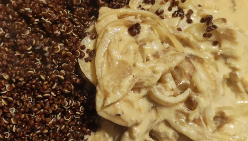 1° Faire cuire le cabillaud à feu doux dans un filet d'huile. En parallèle, faire cuire le Quinoa.