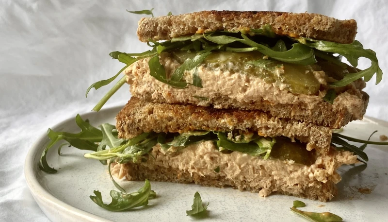 4° Ajouter des cornichons coupés en lamelles, de la roquette et refermer avec l’autre tranche de pain et déguster.