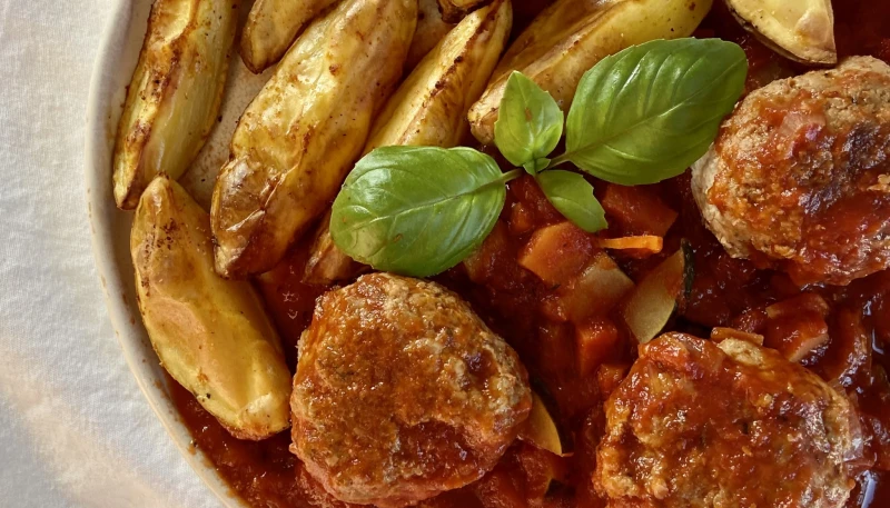 6° Ajouter les boulettes pour qu’elles se réchauffent et s’imprègnent de la sauce, puis servir le tout avec des potatoes (ou des frites pour les plus gourmands).