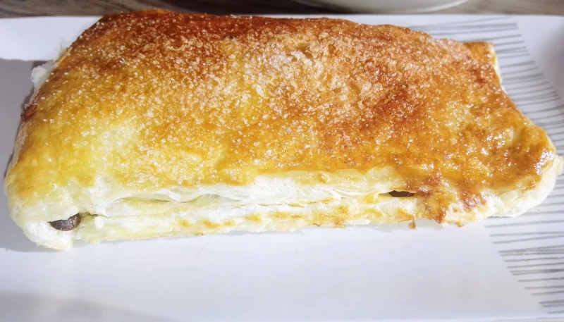 4° Dispersez les pépites de chocolat et refermez la pâte en deux en jointant le côté opposé du pliage. Déposez sur une plaque de four ou le fond du bac de la friteuse à air, préalablement recouverts de papiers sulfurisé.