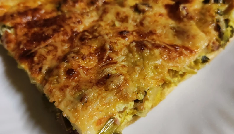 3. Dans un plat à tarte, étaler la pâte. Ajouter les poireaux aux lardons et faire cuire.