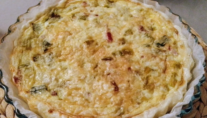 7° Dans un récipient, fouettez les œufs avec le reste de la crème et de gruyère. Versez sur la quiche.