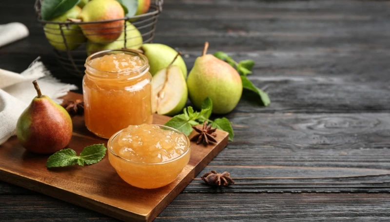 2° Dans une casserole, ajoutez le poiré, le jus de citron et les poires et faites bouillir le tout jusqu’à obtenir une couleur translucide. Filtrez au chinois.
