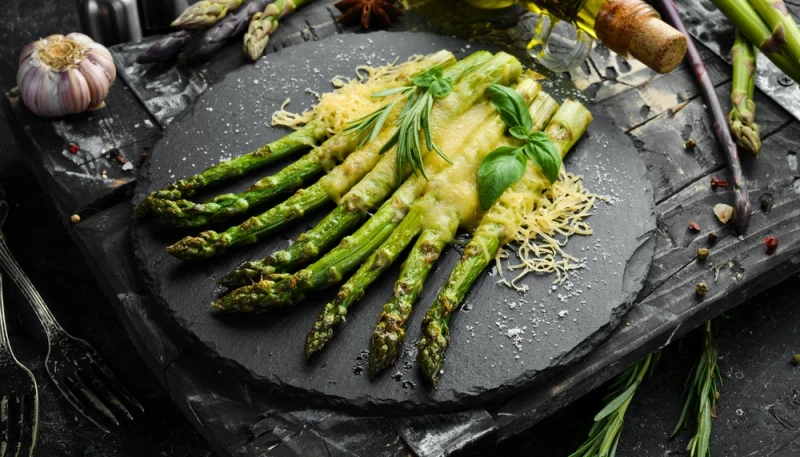 5° Servez les asperges rôties au parmesan.