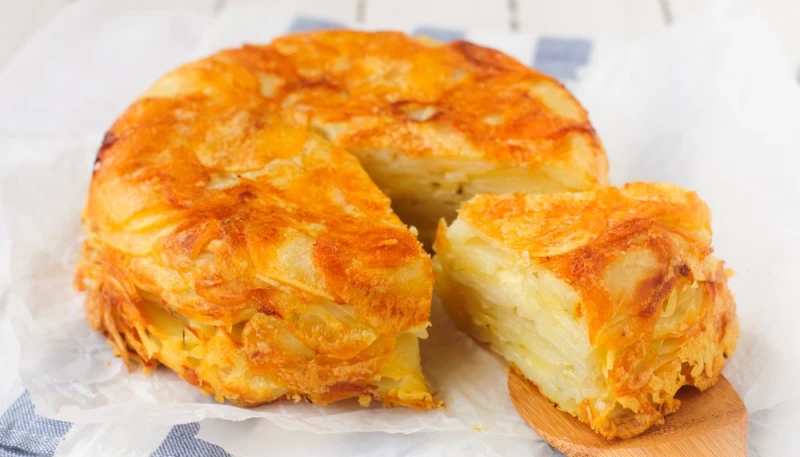 7° Dégustez le gâteau invisible aux pommes de terre et au comté chaud, tiède ou froid.