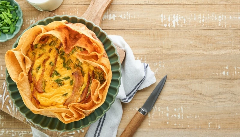 8° Servez cette délicieuse quiche poireaux bacon, idéale pour un repas chaleureux et convivial.