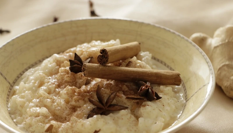 4° Réduisez le feu et laissez le riz absorber le liquide. Ajoutez progressivement une louche de lait épicé à la fois, en remuant bien à chaque ajout. Continuez à feu doux pendant environ 40 minutes, jusqu'à ce que tout le lait soit absorbé et que le riz soit bien tendre.
